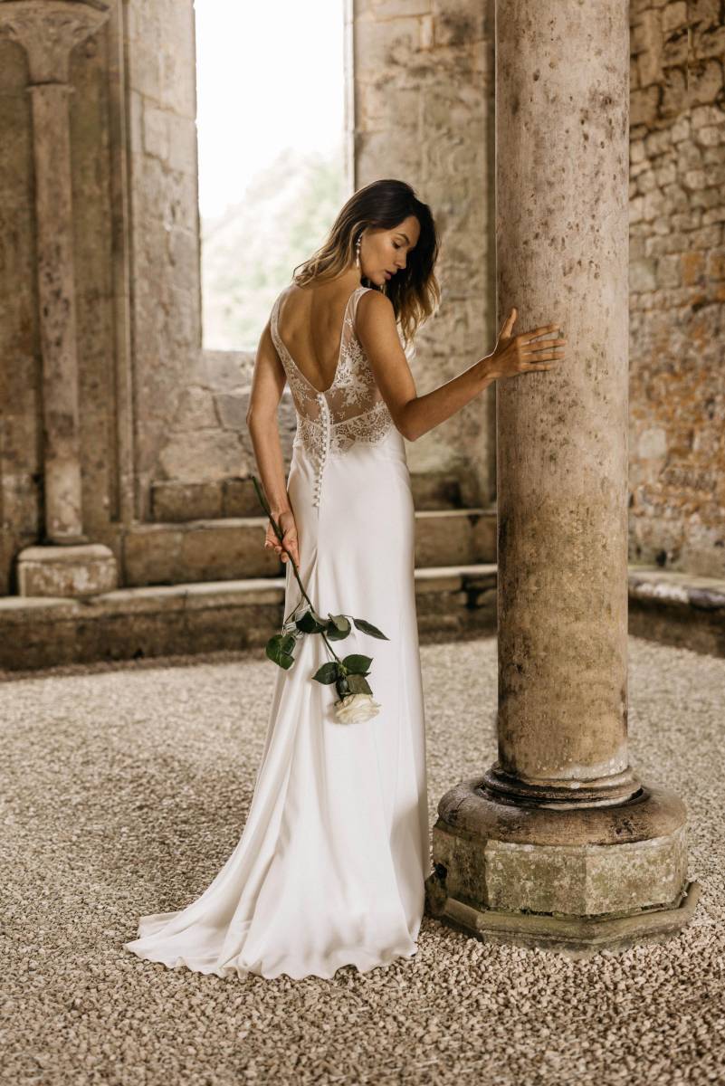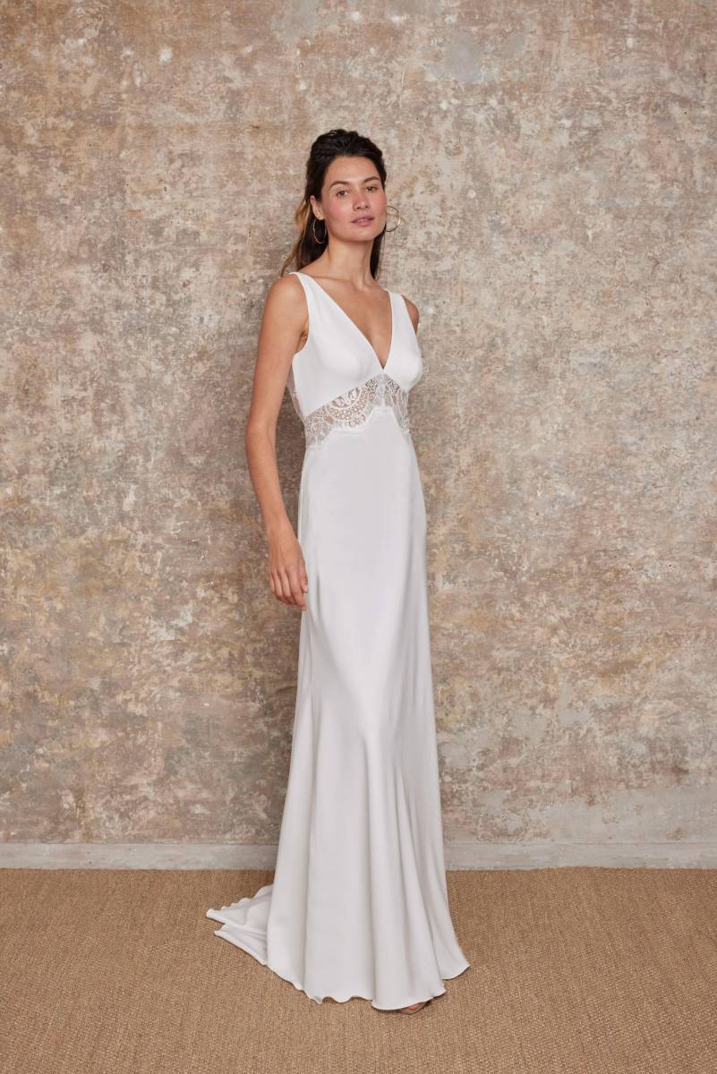 Tout aussi sexy, vous pourriez aimer la robe Néoma, en organza de soie, ou la robe Egérie, dans la même dentelle que la robe de mariée Isaure.