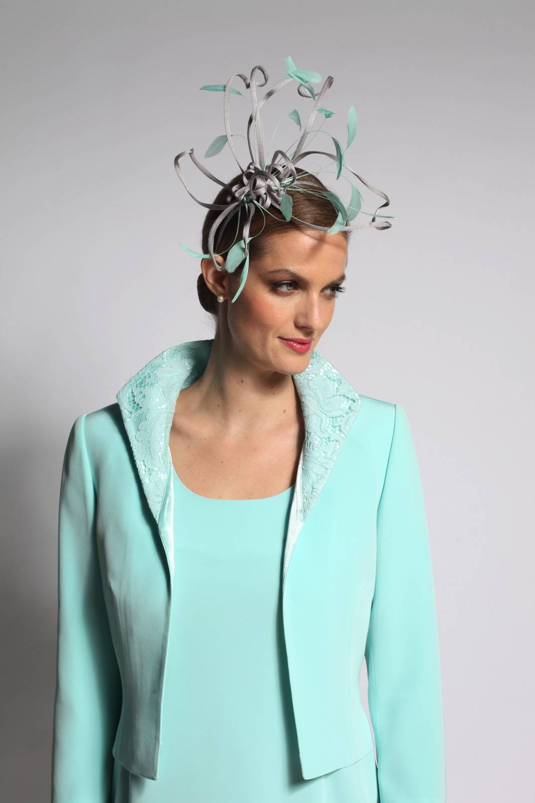 Sur cette photo, le modèle est photographié avec la veste Azam. Une veste courte cintrée, sans bouton. Le col et les poignets peuvent être proposés en dentelle, en soie brodée, en satin, un détail qui fait toute la différence.
