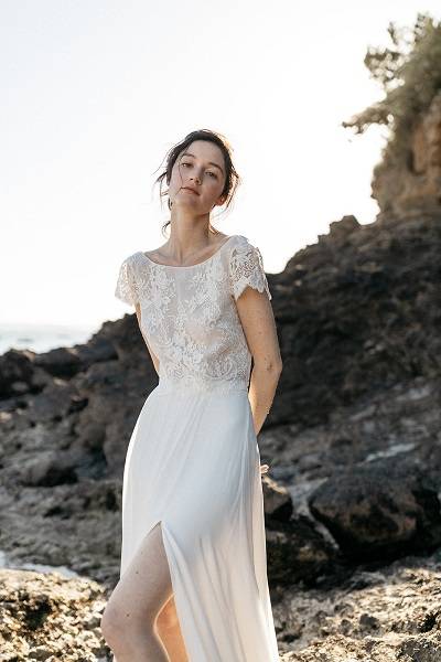 Choisir un ensemble top et jupe vous donnera un style de robe de mariée moderne et décontractée, moins conventionnel qu'une robe de mariée longue traditionnelle.