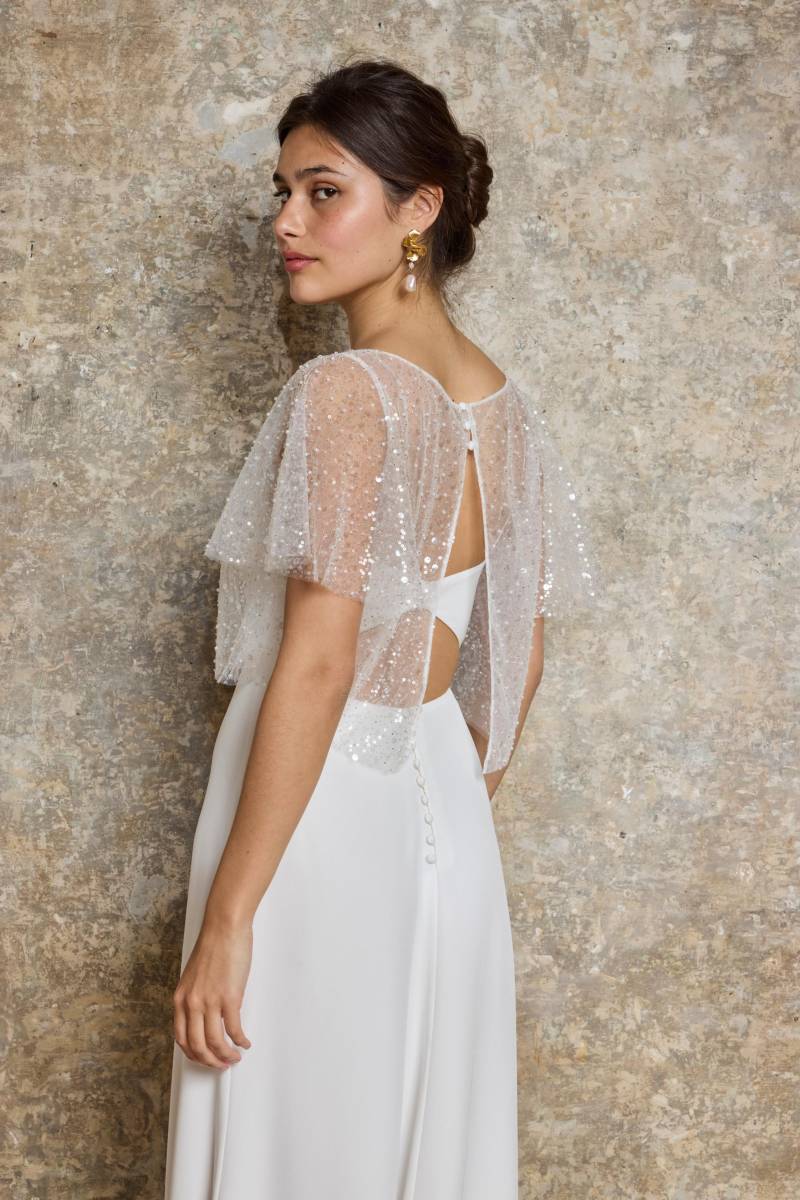 chez Croquelune, nous savons que les détails font toute la différence. C'est pourquoi nous sommes ravies de vous présenter la dernière nouveauté de notre collection Lambert Créations : un magnifique top à sequins, l'accessoire parfait pour sublimer votre robe de mariée.